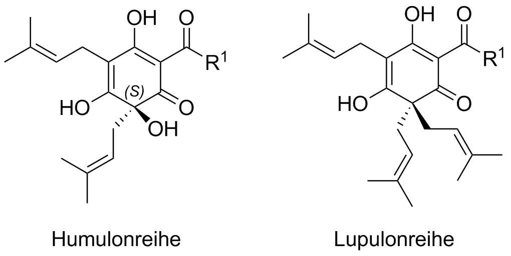 Zu den Bitterstoffen gehören die Humulone und Lupulone. Durch die Variation der Seitenkette R1 werden diese noch in weitere Untergruppen eingeteilt, wie aus folgender Tabelle zu entnehmen ist: