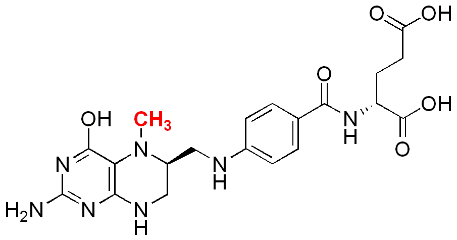 Tetrahydrofolsäure ist in der Lage eine CH3 Gruppe aufzunehmen. Dadurch entsteht N5-Methyltetrahydrofolsäure, die als Methylierungsreagenz wirkt. Die Methylgruppe wird als Formiat (Salz der Ameisensäure) eingebracht. Das Formiat wird vom N-10 nukleophil angegriffen und es entsteht N10-Formyltetrahydrofolsäure. Diese wird zu N5,N10-Methenyltetrahydrofolsäure kondensiert und schließlich in zwei Stufen zu N5-Methyltetrahydrofolsäure reduziert.1)